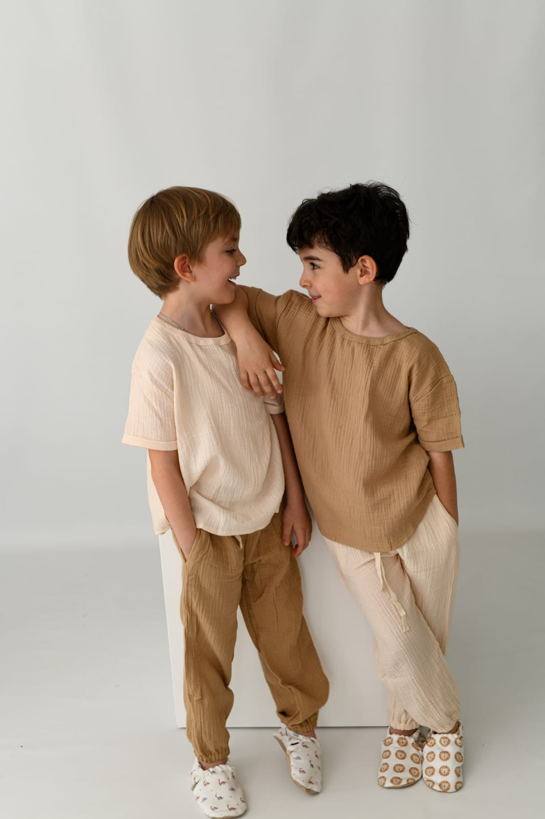 The muslin t-shirt for children offers comfort and style in a single garment.