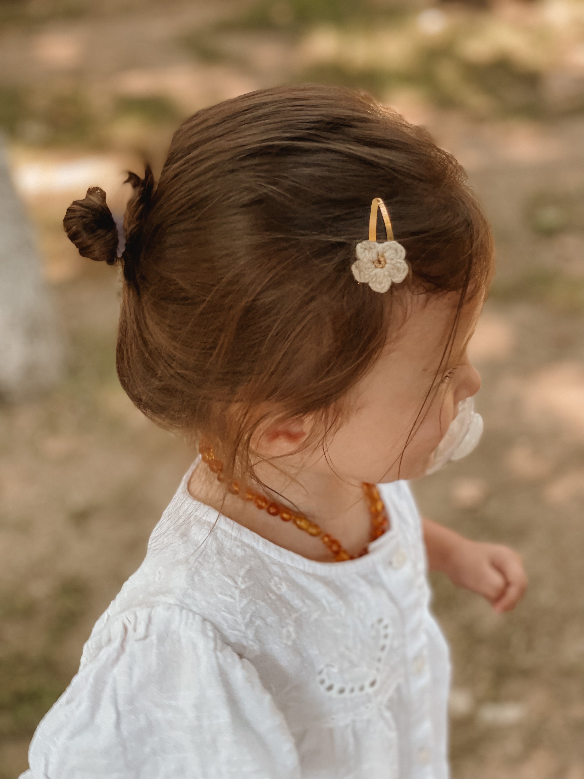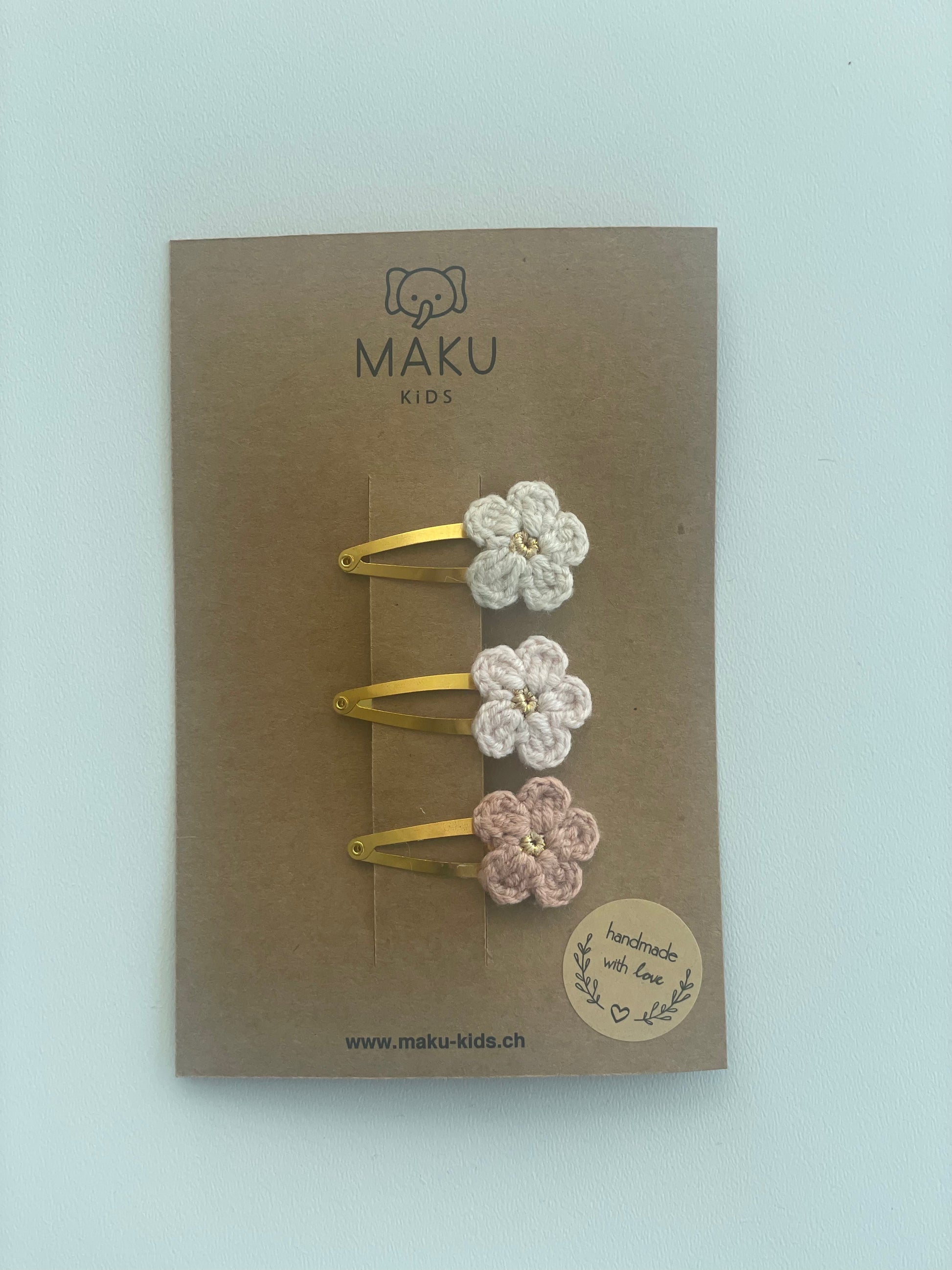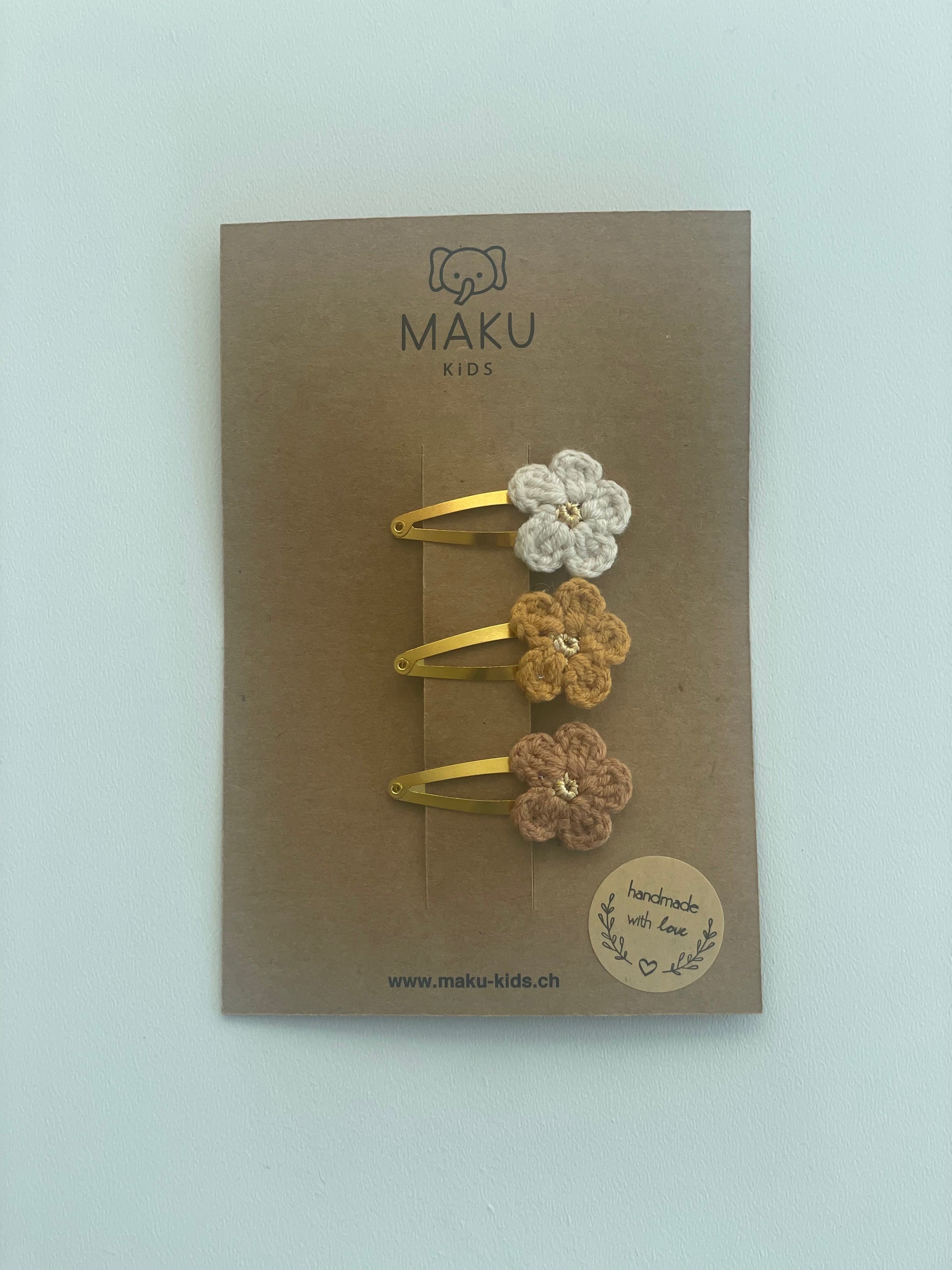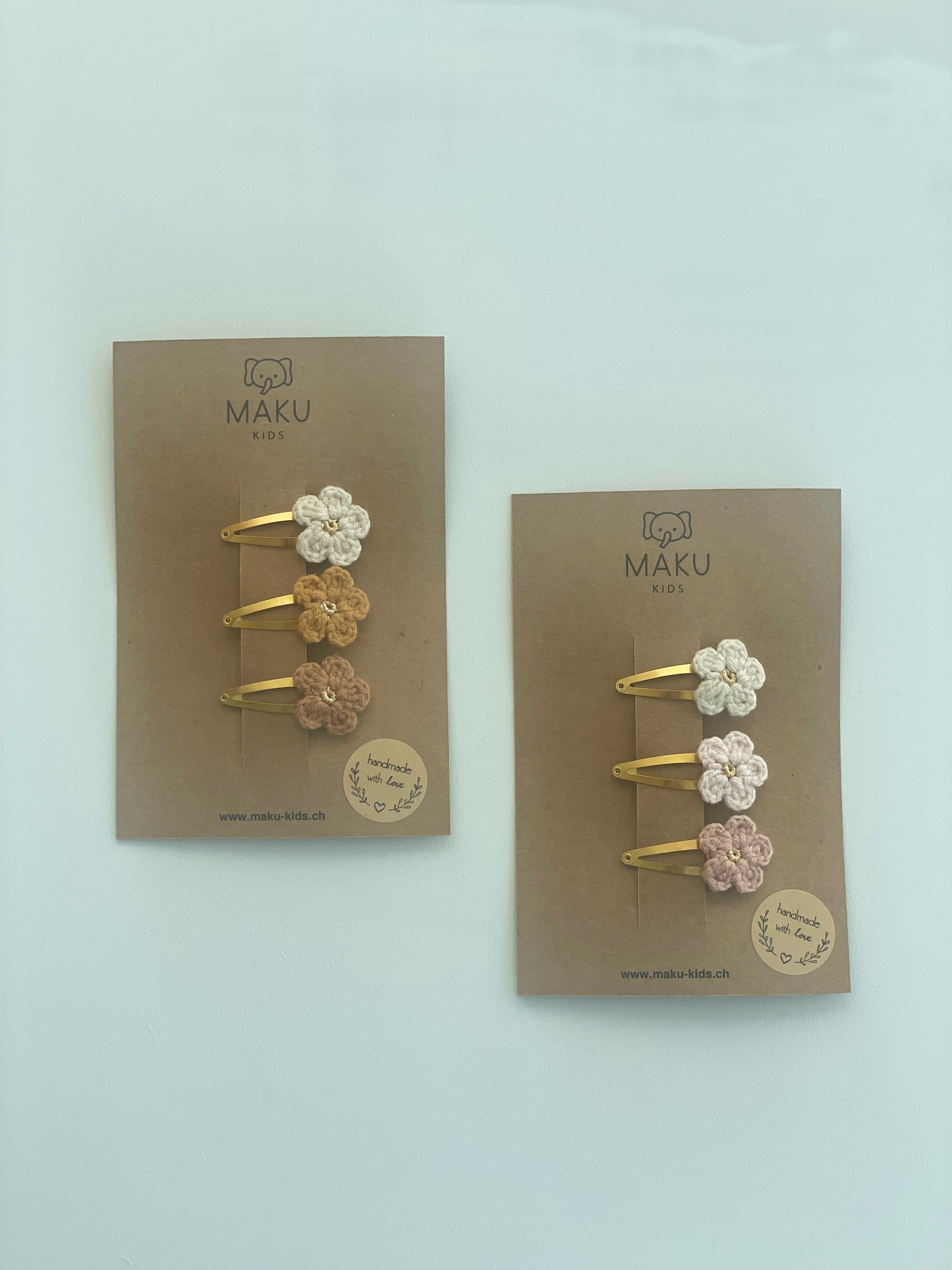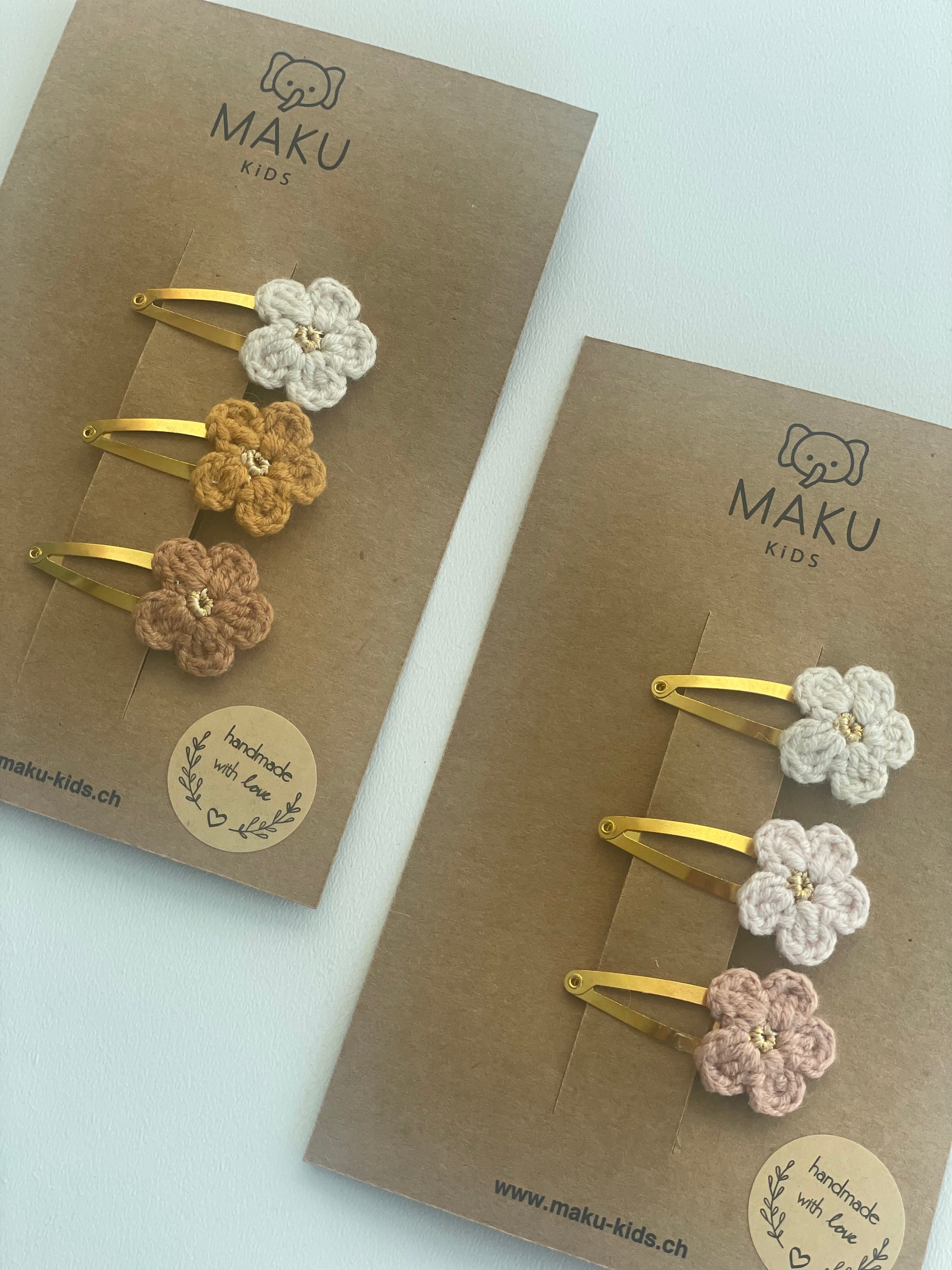 Gestrickte Blumen Haarspangen Mini in Gold im 3er Set