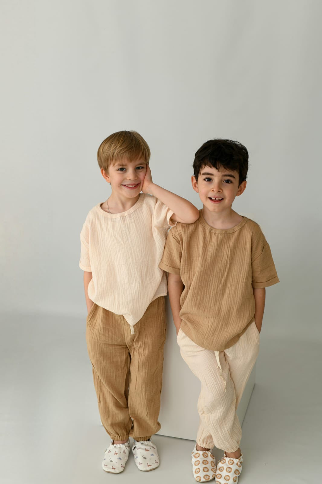 Sommerlich leicht und richtig bequem sind die Hosen. Sie sind ganz aus bio-Baumwolle gefertigt und am Bauch mit einem Gummizug verarbeitet. Dieser kann zusätzlich in der weite angepasst werden. Die lange Hose ist zudem mit Seitentaschen ausgestattet.