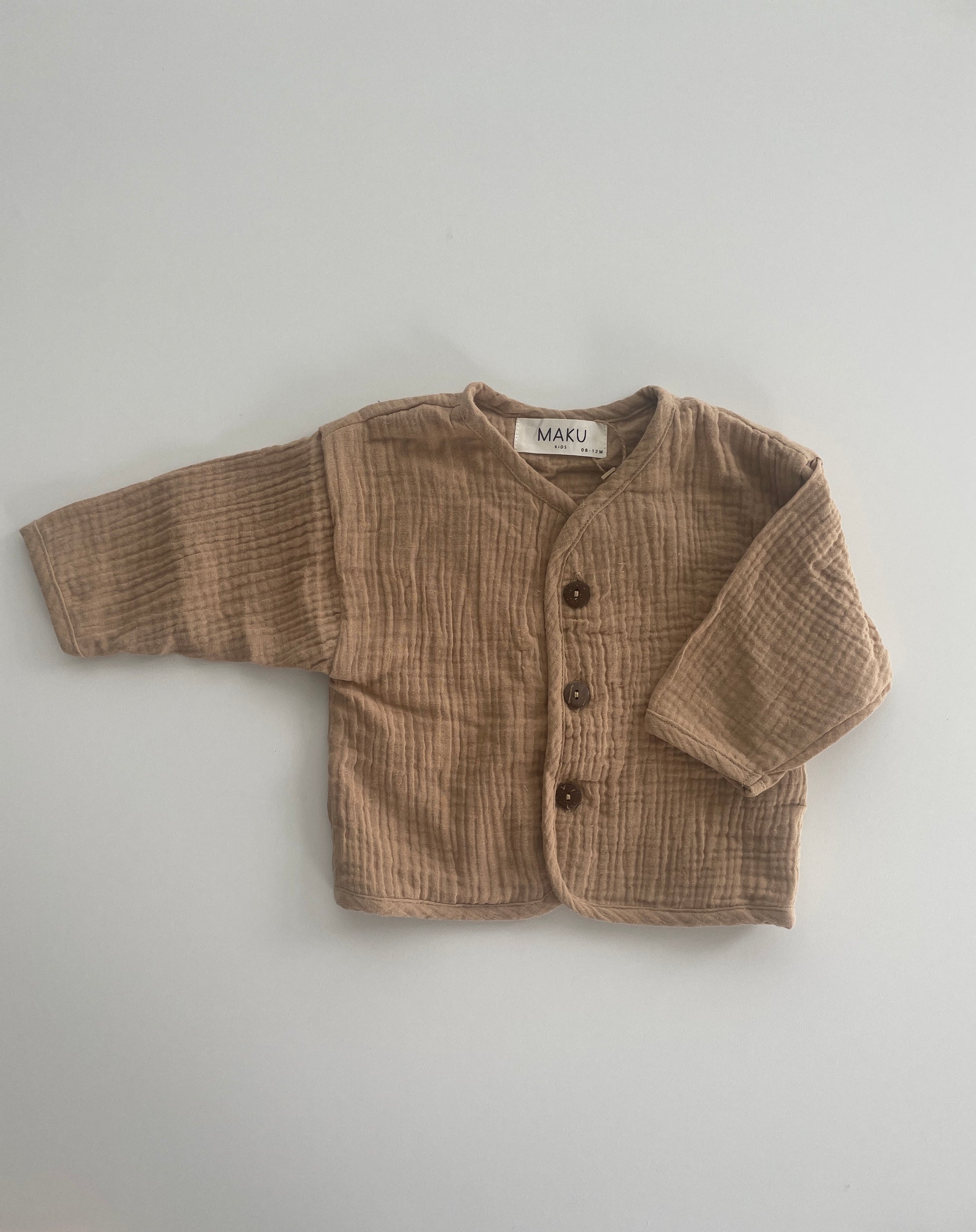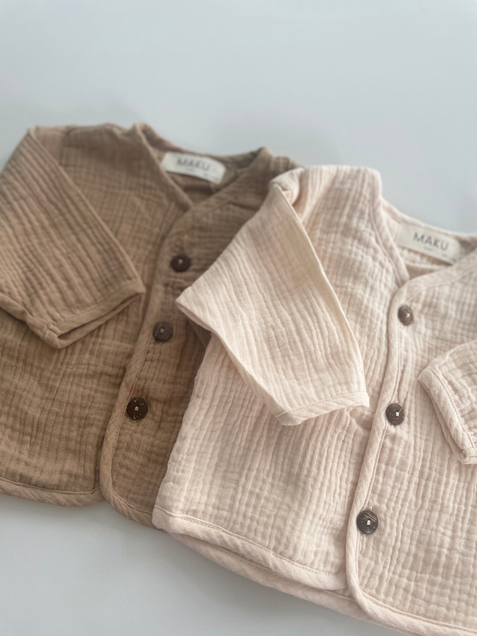 Dieses Musselin Jäckchen kann als Oberteil oder dünnes Jäckchen über einem Shirt getragen werden. Perfekt für Frühling und Sommer