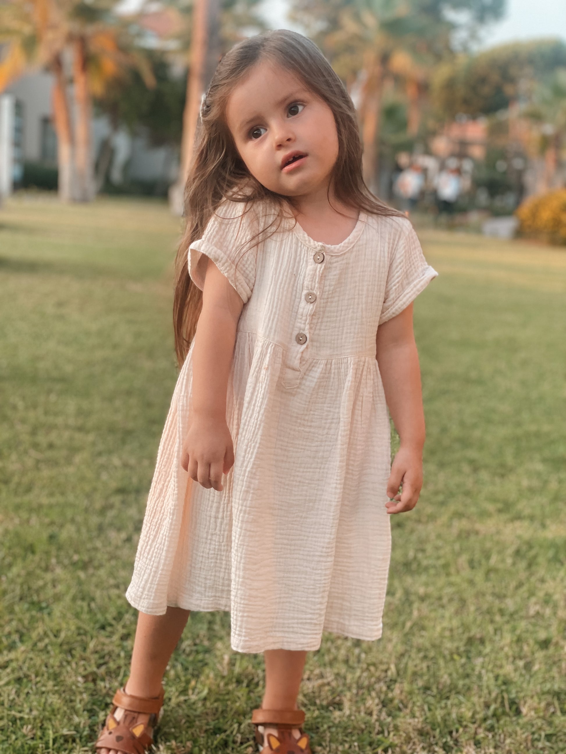 Musselin Kleid mit knöpfen aus Musselin Stoff