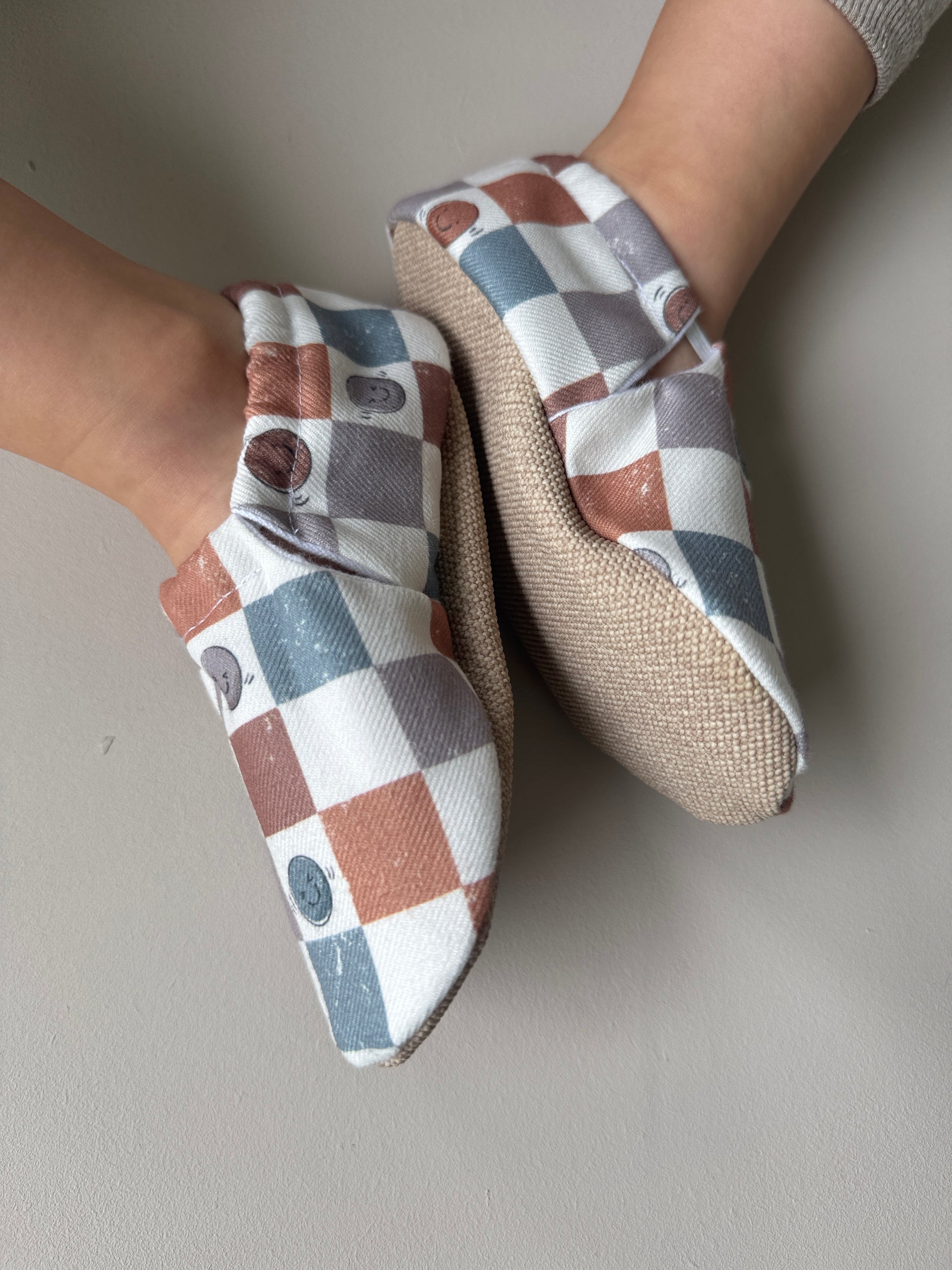 „Damit ihr lange Freude an unseren weichen Schuhen habt, bitte nicht auf rauem Untergrund wie Asphalt oder Kieswegen krabbeln.“