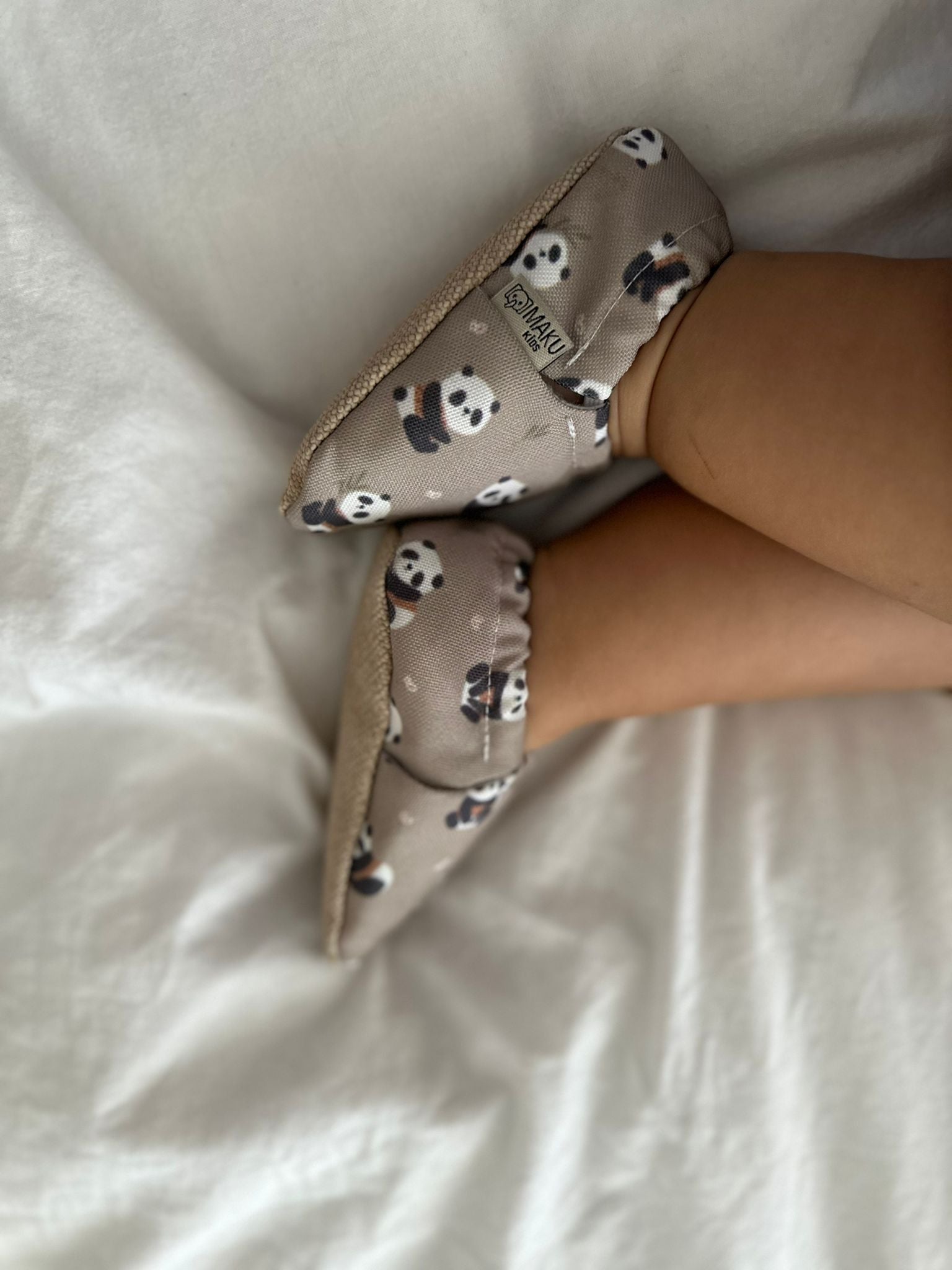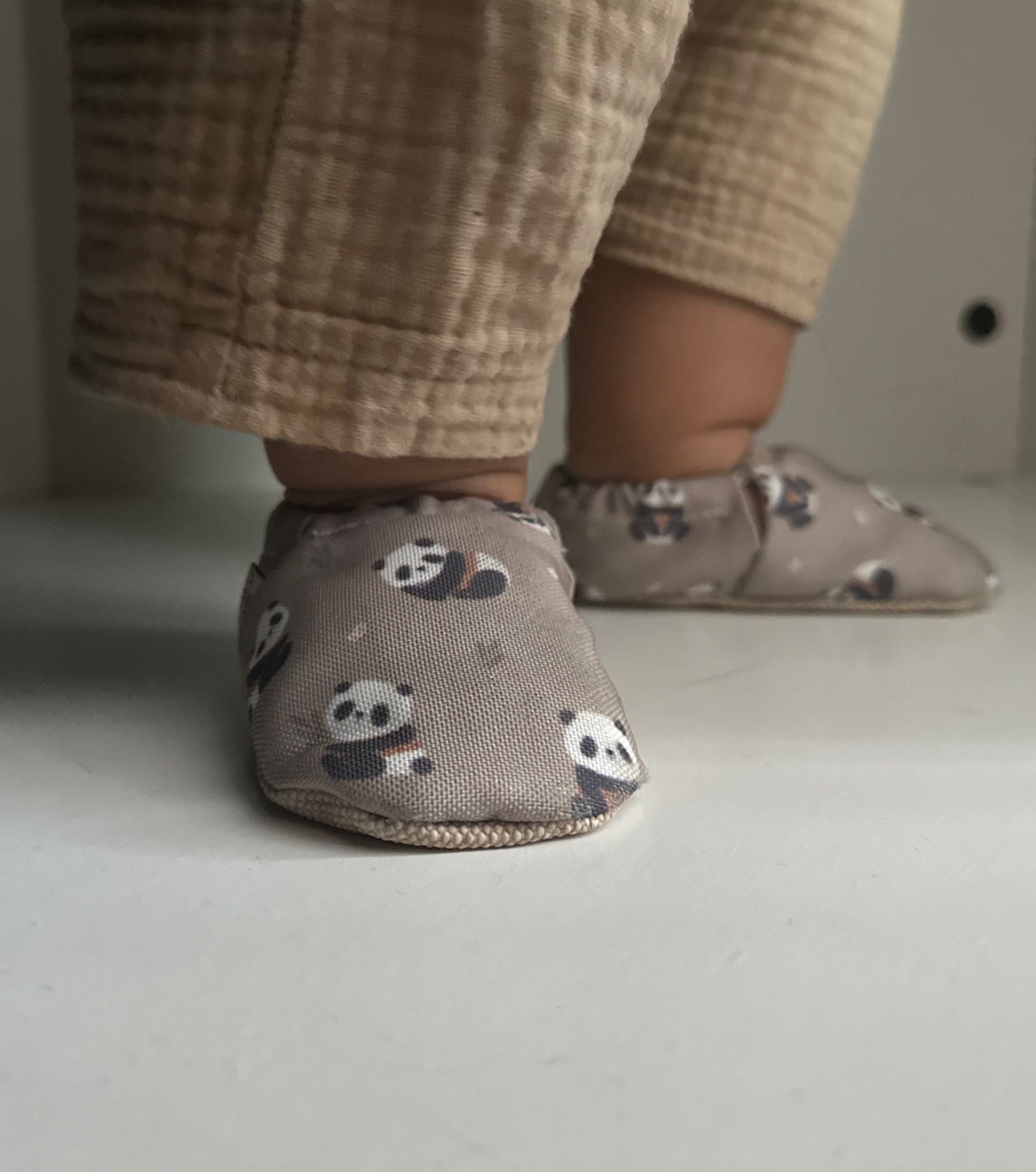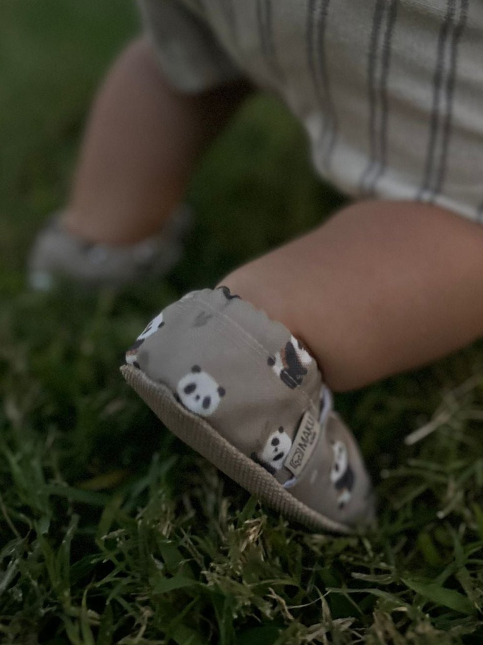 „Damit ihr lange Freude an unseren weichen Schuhen habt, bitte nicht auf rauem Untergrund wie Asphalt oder Kieswegen krabbeln.“